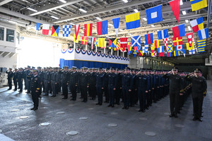 미국 해군 7함대 소속 핵추진 항공모함 '조지 워싱턴함(CVN-73)'을 포함한 제5항모강습단이 5일 오전 부산 남구 해군작전사령부 부산작전기지에 입항했다.니미츠급(10만t급)인 조지 워싱턴함은 길이 333m, 폭 76.8m, 비행갑판 면적은 축구장 3배 규모이며, 승조원은 6000여 명이다.이 항모는 최신예 스텔스 전투기 F-35C와 슈퍼호넷 전투기(F/A-18), 호크아이 조기경보기(E-2C), 해상작전헬기 등 항공기 80여 대를 탑재히고 있어 '떠다니는 군사기지'로 불린다.2008~2015년 일본 요코스카에 배치됐었던 조지 워