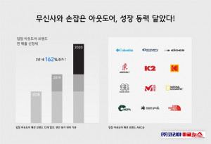 입점 주요 12개 아웃도어 브랜드 성장세 분석 차별화된 패션 콘텐츠로 10~30대와 접점 확대 무신사에서 판매한 주요 아웃도어 패션 브랜드의 연 매출을 합산한 결과 2018년과 비교해 2년 새 162%, 2019년과 비교해서는 70% 이상 증가한 것으로 나타났다. 지난달엔 전년 동기 대비 매출이 57% 이상 늘었다. (인포그래픽=무신사 제공)고전을 면치 못하던 아웃도어 브랜드들이 무신사에 입점하면서 성장 동력을 얻고 있다.19일 무신사에 따르면 지난해 무신사에서 판매한 주요 아웃도어 패션 브랜드의 연 매출을 합산한 결과 2018년과