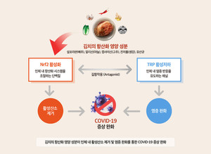 '알몸 절임 배추' 파동으로 중국산 비위생 김치에 대한 불신이 극에 달한 가운데 김치 종주국 한국산 김치가 코로나19 증상 완화에 도움이 된다는 국제공동연구 결과가 나왔다.코로나19 이후 면역 증강에 도움이 되는 식품에 대한 관심과 인기가 전 세계적으로 높은 가운데 나온 연구 결과여서 눈길을 끈다.31일 세계김치연구소에 따르면 프랑스 몽펠리에 대학 폐의학과 장 부스케 명예교수 연구팀과 공동연구를 통해 김치의 재료인 배추, 고추, 마늘 등에 함유된 각종 영양 성분이 인체 내 항산화시스템을 조절해 코로나19 증상을 감지하는 신경채널을