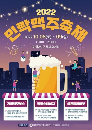 경기 의정부시에서 도심 속 맥주축제가 열린다.의정부시상권활성화재단은 민락2지구상가번영회와 공동 주관으로 오는 8~9일 '2022 민락맥주축제'를 개최한다고 7일 밝혔다.그동안 코로나19 영향으로 침체된 상권을 살리고 시민들에게도 다양한 볼거리와 즐길거리가 제공될 것으로 기대된다.우선 민락 로데오거리 광장에 1000여 명의 축제 참가자들이 맥주와 안주를 즐길 수 있는 테이블이 설치된다.또 민락2지구 상권내 공공배달앱 ‘배달특급’에 가입된 190개 가맹점 할인쿠폰 프로모션도 마련됐다.가족 누구나 즐기는 축제를 위해 축제장 내에 달빛스테