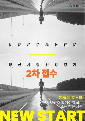 양산시(시장 나동연)는 2025년 ‘양산사랑 건강걷기’사업의 2차 접수를 5월 12일(월)부터 5월 16일(금)까지 접수한다고 2일 밝혔다.신청 대상은 스마트폰을 사용하는 20세 이상 양산시민이며, 양산시보건소 누리집의‘양산사랑 건강걷기’메뉴를 통해 온라인으로 신청할 수 있다.방문 신청은 양산시보건소 1층 통합건강증진실(☎392-5252~4)이나 동부건강생활지원센터 2층 건강측정실(☎392-6998)에서 가능하다.참여자는 1일 1만보, 주 5일 이상, 5주 연속 걷기 목표를 달성해야 하며, 걷기 목표를 달성하면 인센티브로 온누리상품