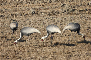 재두루미 6마리가 지난 1월 20일경 우포늪 사지포에서 발견돼 현재까지 우포늪에서 활동하고 있습니다. 군에서는 철새모이(볍씨)주기 사업을 지난 1월 3일부터 실시하고 있으며 1주일에 2회(화, 목), 1회 볍씨 5포 이상을 대대, 사지, 모곡, 세진, 장재, 우만들 등지에 뿌리고 있습니다.