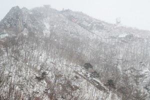 절기상 우수를 사흘 앞둔 16일 경남 함양군 병곡면 대봉산휴양밸리를 찾은 관광객이 모노레일을 타며 설산을 구경하고 있다.