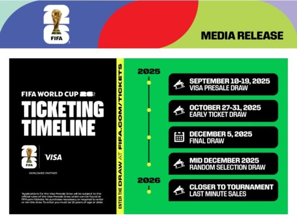 FIFA는 4일(한국 시간) 2026 북중미월드컵 입장권 판매 일정을 발표했다.