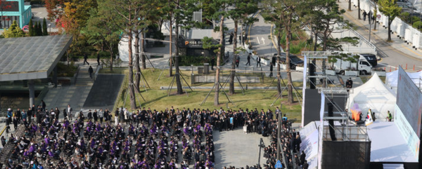 광화문 광장은 보라색 옷을 입고 모인 유가족들과 추운 날씨에도 현장을 찾은 시민들의 발걸음으로 가득 찼다. 주최 측 추산 1000여명이 이날 기억식에 함께했다.