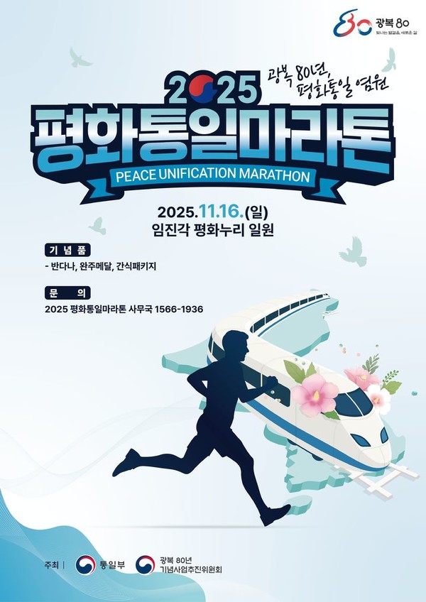 통일부와 광복 80년 기념사업추진위원회는 오는 16일 파주 임진각 평화누리 일원에서 '광복 80년, 우리가 만드는 평화'를 주제로 2025 평화통일마라톤을 개최한다고 10일 밝혔다.