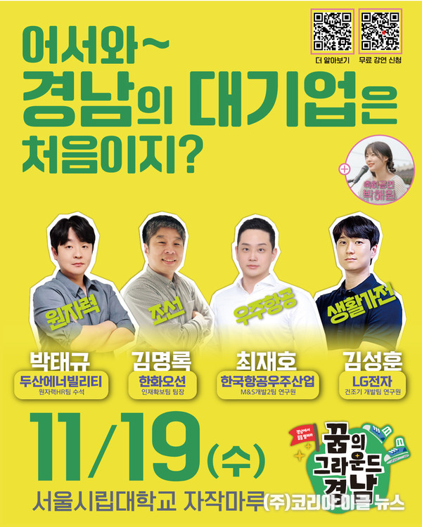 경상남도(도지사 박완수)는 19일부터 20일까지 서울시립대 자작마루에서 수도권 청년 대상 "꿈의 그라운드 경남" 찾아가는 토크 콘서트를 개최한다.