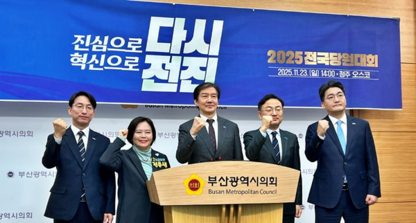 조 후보는 "부산·울산·경남에서 민주당과 다른 야당, 시민사회가 연대해 '부울경 내란 극우 퇴출 연대'를 만들겠다"며 "내년 지방선거에서 국민의힘을 부산시장·광역의회·기초단체에서 발붙이지 못하게 하고, 기초의회 비중도 절반 이하로 낮추겠다"고 말했다.